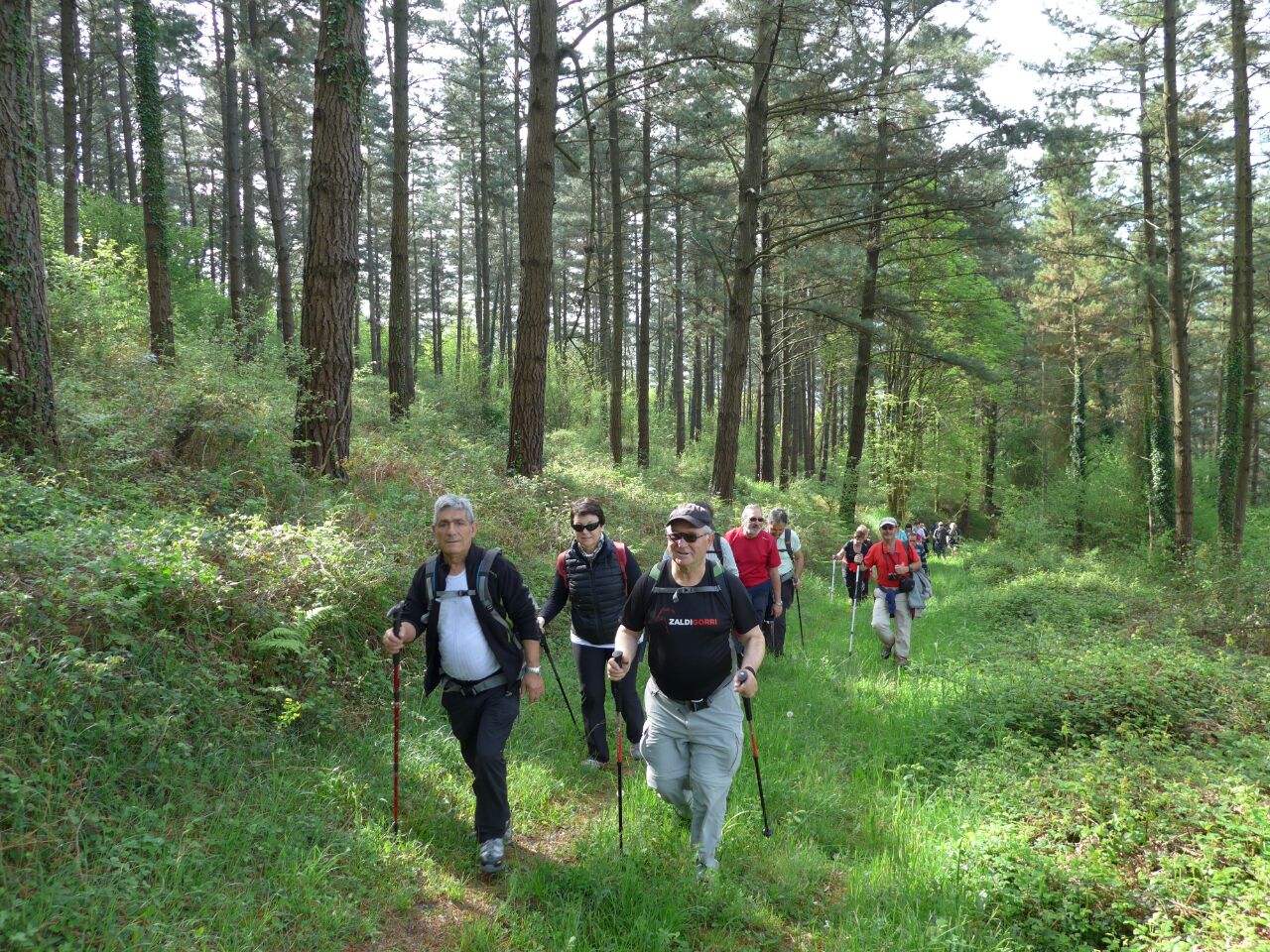 Viernes 24 de abril, 9 de la mañana. En Durango un grupo numeroso de senderistas esperando la llegada del autobús de Elorrio, donde vienen más compañeros, para desplazarse a Amorebieta y dar comienzo a la 4º etapa de la GR Mikeldi programada.