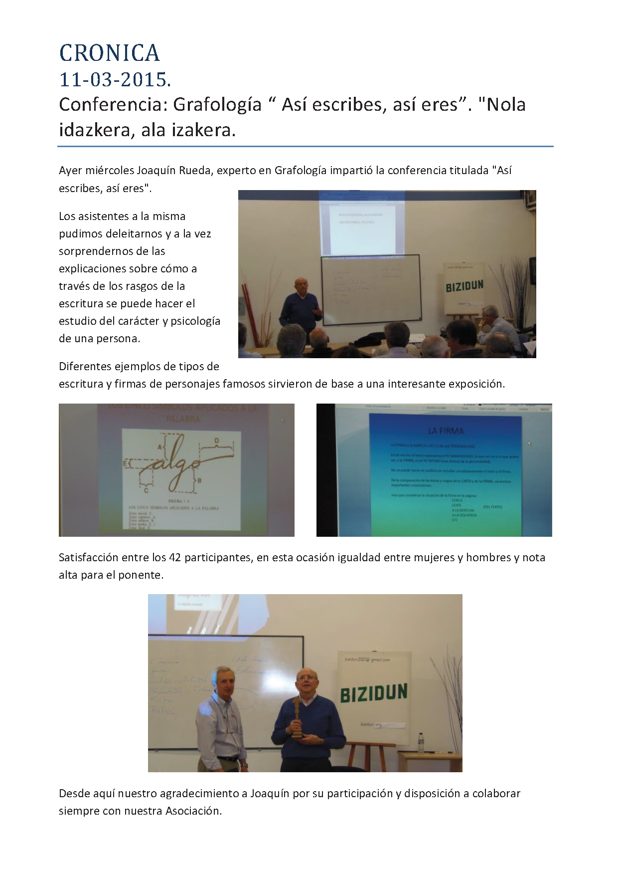 65 personas, 39 mujeres y 26 hombres, llenaron el salón de conferencias del Museo a cuyo director, Joseba Aizpurua, queremos agradecer por su colaboración.